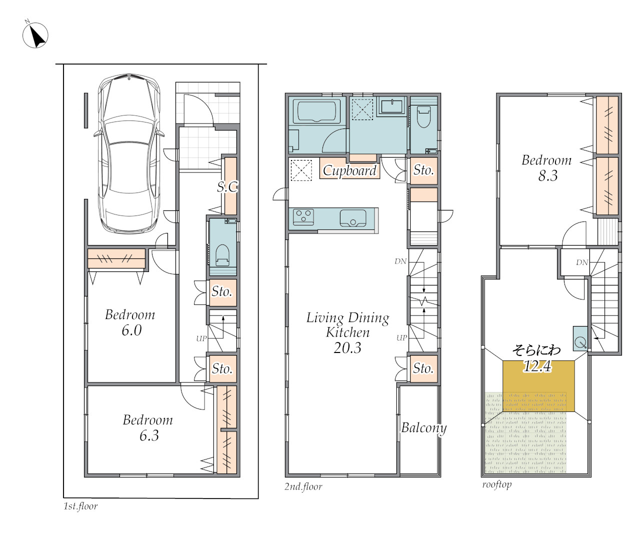 アウトドアの楽しみ空間「そらにわ」や趣味を過ごす場所「こもりべや」のある