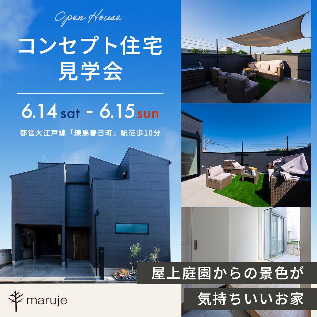 屋上庭園からの景色は低層住宅ならではの気持ちのよい眺望です。