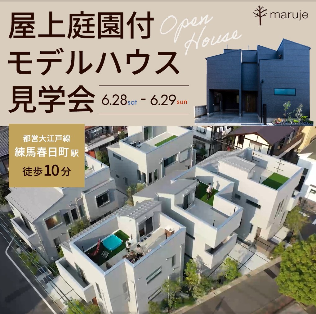 屋上庭園からの景色は低層住宅ならではの気持ちのよい眺望です。