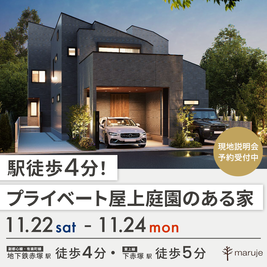 ホームお知らせ現地説明会開催【地下鉄赤塚駅徒歩4分】 現地説明会開催【地下鉄赤塚駅徒歩4分】|株式会社マルジェ News お知らせ 2025.11.17 お知らせ イベント 現地説明会開催【地下鉄赤塚駅徒歩4分】 屋上庭園のあるコンセプト住宅 地下鉄赤塚237 GALLERY+ 副都心線・有楽町線「地下鉄赤塚」駅徒歩 4 分今週末、現地にて説明会を開催いたします♪ 近隣にモデルハウスの用意もございますので是非この機会にお立ち寄りください。【開催日程】11月22日(土)・23日(日)・24日(月)10:00~17:00 【現地住所】練馬区田柄2-37-19 一覧へ戻る CATEGORY お知らせ イベント ARCHIVE 2025 2024 2023 About us マルジェについて Creator produce コンセプト住宅ラインナップ Works 施工実績 Company 会社概要 Contact お問い合わせ まずは、モデルハウス見学で“こだわりのコンセプト住宅”を体感。 03-3559-1511[営業時間] 9:00〜18:00 (⽔‧⽊ 定休) お問い合わせ‧資料請求 Event現地説明会開催情報 Property物件情報