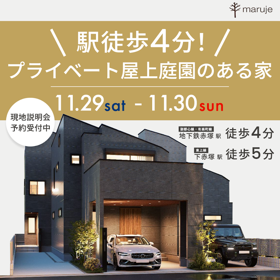 ホームお知らせ現地説明会開催【地下鉄赤塚駅徒歩4分】 現地説明会開催【地下鉄赤塚駅徒歩4分】|株式会社マルジェ News お知らせ 2025.11.24 お知らせ イベント 現地説明会開催【地下鉄赤塚駅徒歩4分】 屋上庭園のあるコンセプト住宅 地下鉄赤塚237 GALLERY+ 副都心線・有楽町線「地下鉄赤塚」駅徒歩 4 分今週末、現地にて説明会を開催いたします♪ 近隣にモデルハウスの用意もございますので是非この機会にお立ち寄りください。【開催日程】11月29日(土)・30日(日)10:00~17:00 【現地住所】練馬区田柄2-37-19 一覧へ戻る CATEGORY お知らせ イベント ARCHIVE 2025 2024 2023 About us マルジェについて Creator produce コンセプト住宅ラインナップ Works 施工実績 Company 会社概要 Contact お問い合わせ まずは、モデルハウス見学で“こだわりのコンセプト住宅”を体感。 03-3559-1511[営業時間] 9:00〜18:00 (⽔‧⽊ 定休) お問い合わせ‧資料請求 Event現地説明会開催情報 Property物件情報