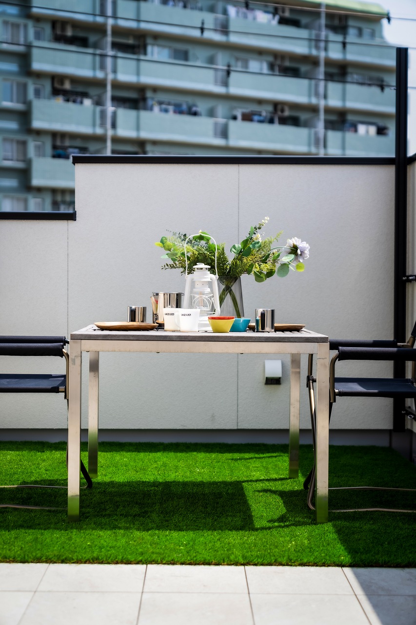 アウトドアの開放的なくつろぎを、我が家で手軽に堪能できる屋上庭園。家族や仲間と集い、楽しみを分かち合える心地よいスペース。