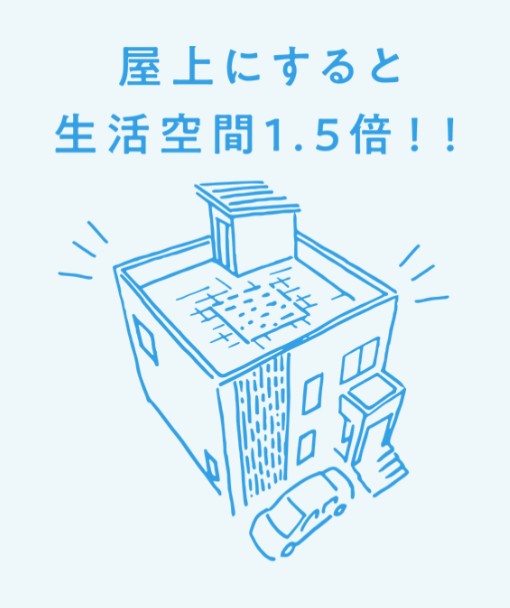 マルジェの住宅では、屋根の代わりに「屋上庭園」を取り入れることで、お客様の生活スペースの最大化をご提案しています。