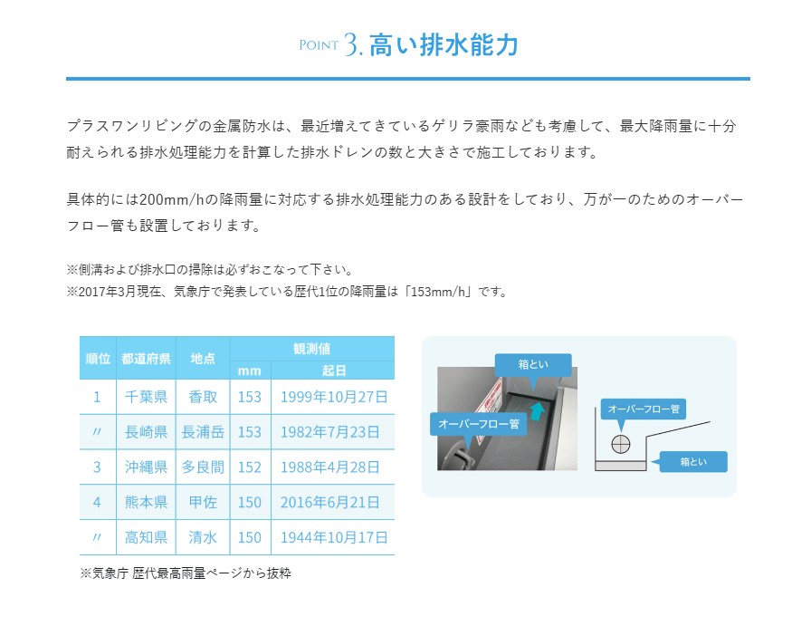 メンテナンス性と耐久性に優れた「金属防水」を採用。一般的な防水塗装に比べ、水漏れのリスクを大幅に低減し、長期間にわたって安心して屋上ライフを満喫していただけます。