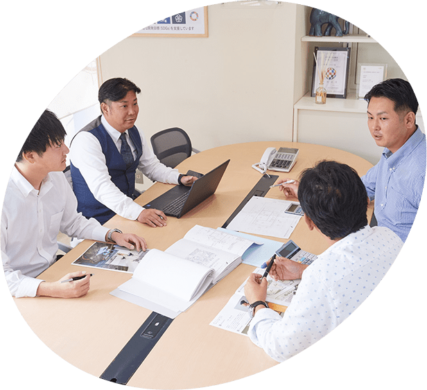 土地探しから企画、設計、建築、販売、アフターケアまでを社内一貫体制で行っております。地元密着で不動産事業を行ってきた独自のネットワークで土地の仕入れをしているため、好立地の分譲地など、ポータルサイトに出ないような好条件の最新土地情報をご紹介できます。