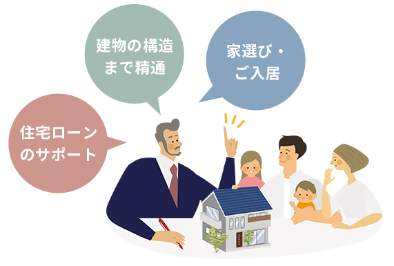住宅の専門知識がない方にも、分かりやすくプロの視点から家選びのアドバイスや住宅ローンのサポートをさせていただきますので、安心してお任せください。