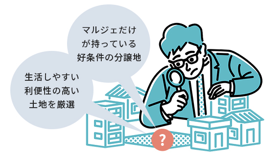 立地の良さはもちろん、「駅からの距離が徒歩圏内」「近くにスーパーがあって買い物しやすい」など、充実した毎日を過ごしていただけるよう、お客様目線で利便性の高い土地を厳選しています。