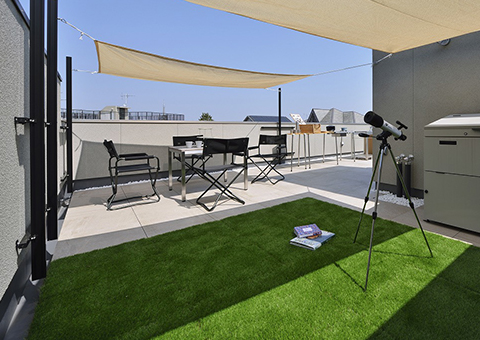 マルジェの戸建分譲住宅は、生活スペースの最大化のために、屋根の代わりに「屋上庭園」を積極的に取り入れています。