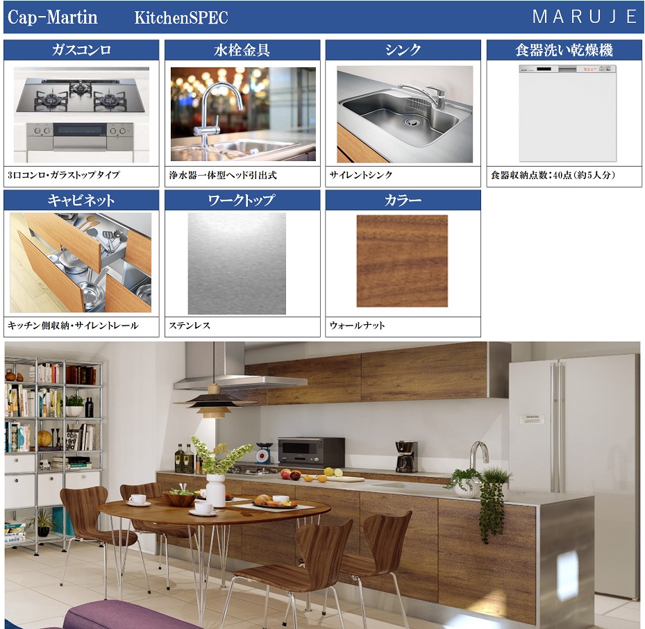 一般的な建売では1~2箇所の設置が多い中、マルジェのデザイナーズハウスではリビングダイニング部分に2箇所、キッチンに1箇所の計3箇所が標準で備わっておりLDKのどこにいても暖かく過ごすことができます。