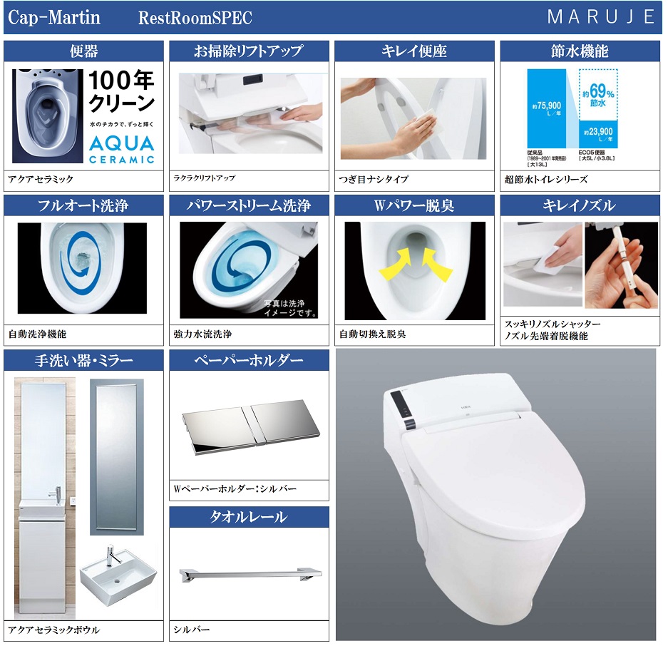 カップボード 床暖房 ウォークインクローゼット ルーフバルコニー 屋上庭園 グルニエ 対面式キッチン 節水トイレ タンクレストイレ 魔法瓶浴槽 食器洗い乾燥機 アクアフォーム 認定低炭素住宅 LOW-Eガラス ペアガラスサッシ 車庫2台 カードキー 地盤保証 フラット35S対応可 カラーモニタインターホン 浴室暖房換気乾燥機 ハイブリット給湯・暖房システム アルミ樹脂複合サッシ