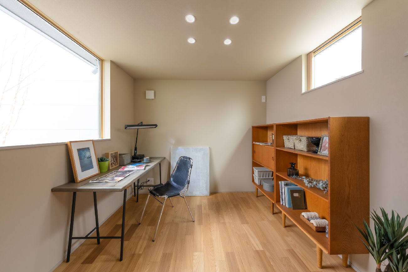 独立した3帖のワークスペースは、集中力を高めるのに最適な広さ。デスクの正面には大きなピクチャーウィンドウを配し、中庭を感じながらリフレッシュと集中を両立できます。