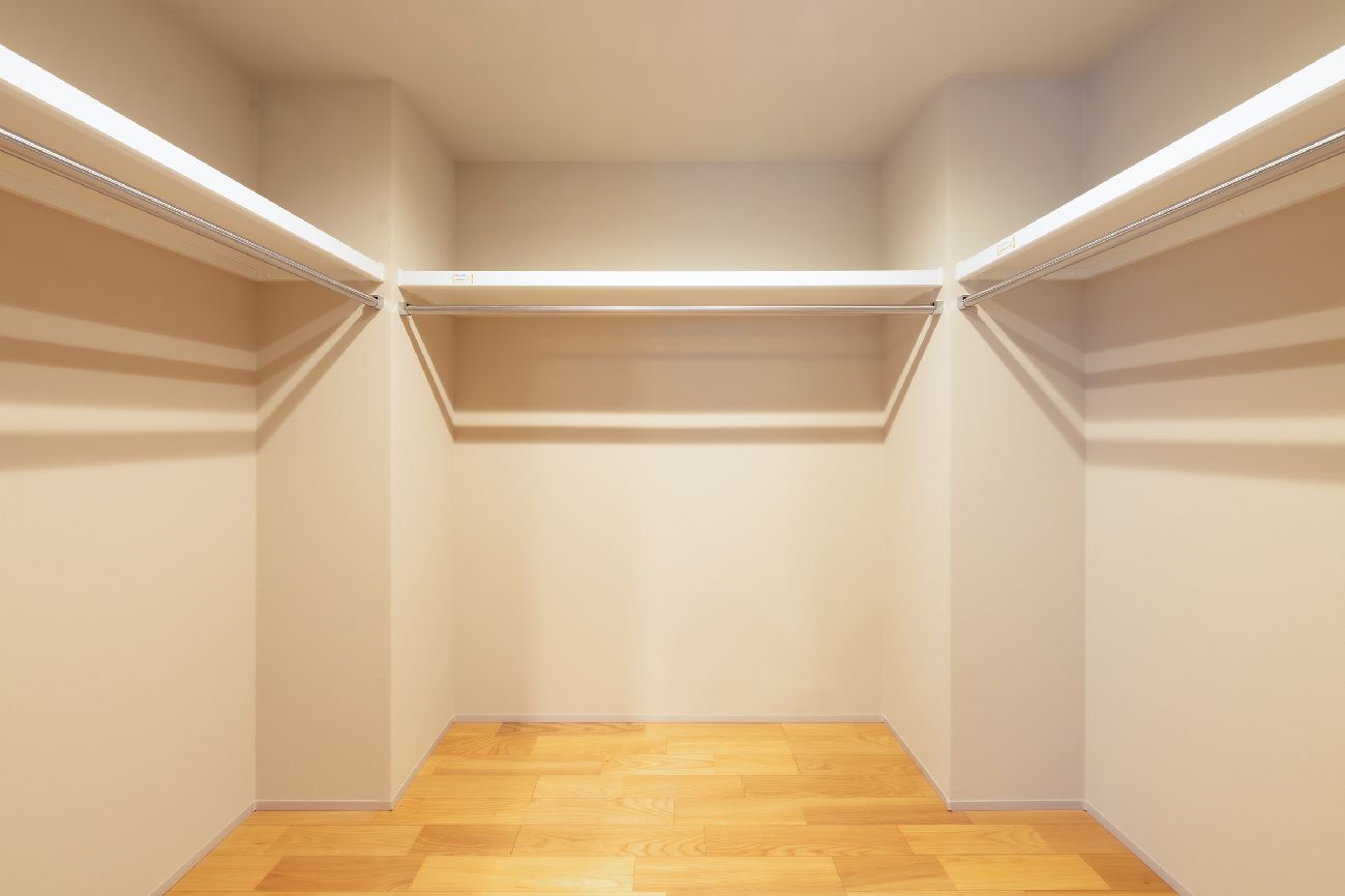 大容量の大型ウォークインクローゼット。夫婦二人の衣類や季節物までスッキリ収まり寝室を常にクリーンな状態に保てます。