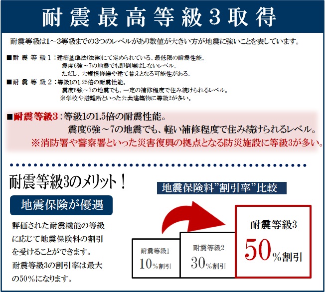 地震大国・日本で、住まいに最も求められるのは「揺れに耐える力」です。私たちがご提案するのは、建築基準法の1.5倍の強度を誇る「耐震等級3」の住まい。 これは、災害復興の拠点となる消防署や警察署と同じ、国内最高ランクの耐震基準です。一度の大きな揺れに耐えるだけでなく、繰り返しの余震にも強い構造で、大切な家族の笑顔と未来を足元から支えます。