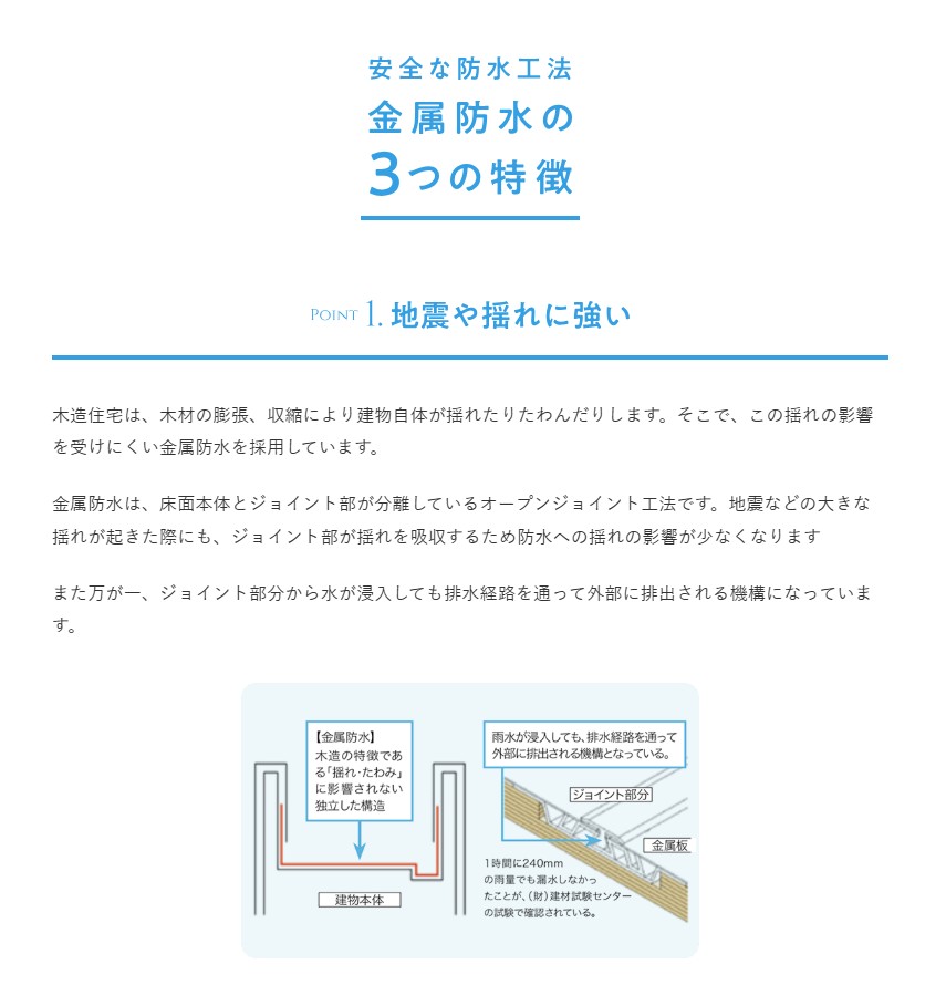 従来の防水工法のように表面がひび割れたり、数年ごとに塗り替えたりする必要がほとんどありません。地震や建物の揺れにも追従する高い柔軟性を持ち、大切な住まいを長期間、確実な防水性能で守り抜きます。見えない場所へのこだわりが、将来の大きな安心につながります。