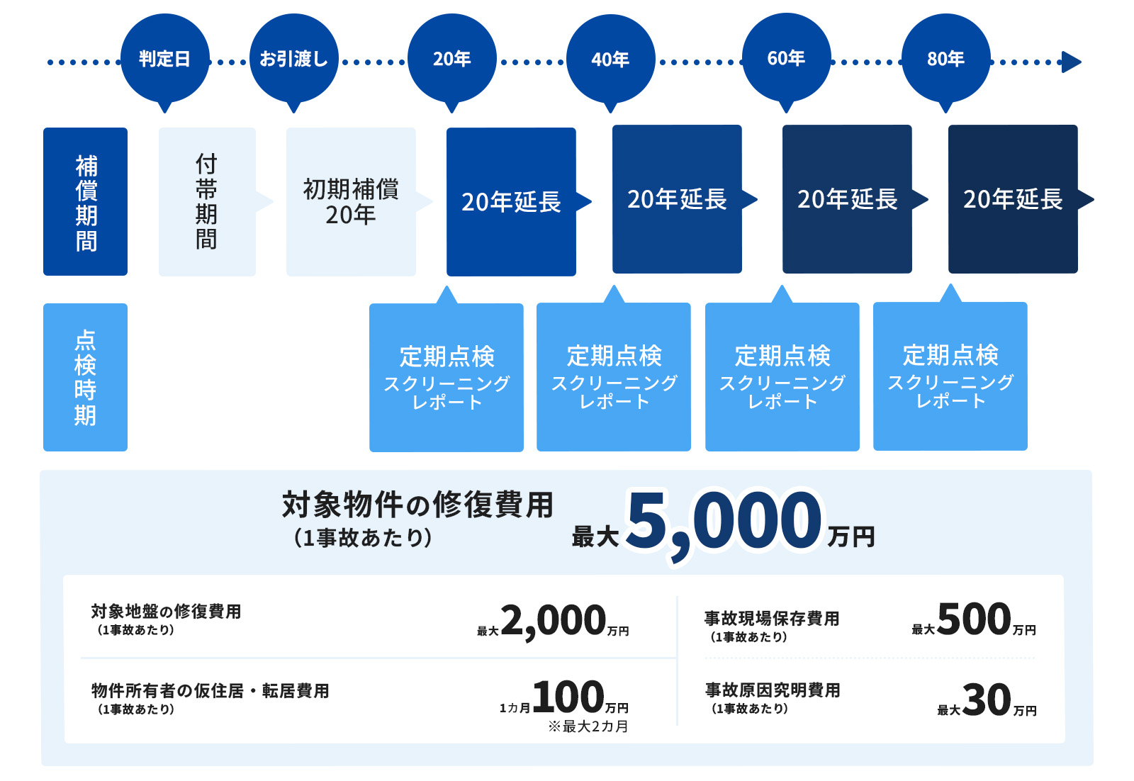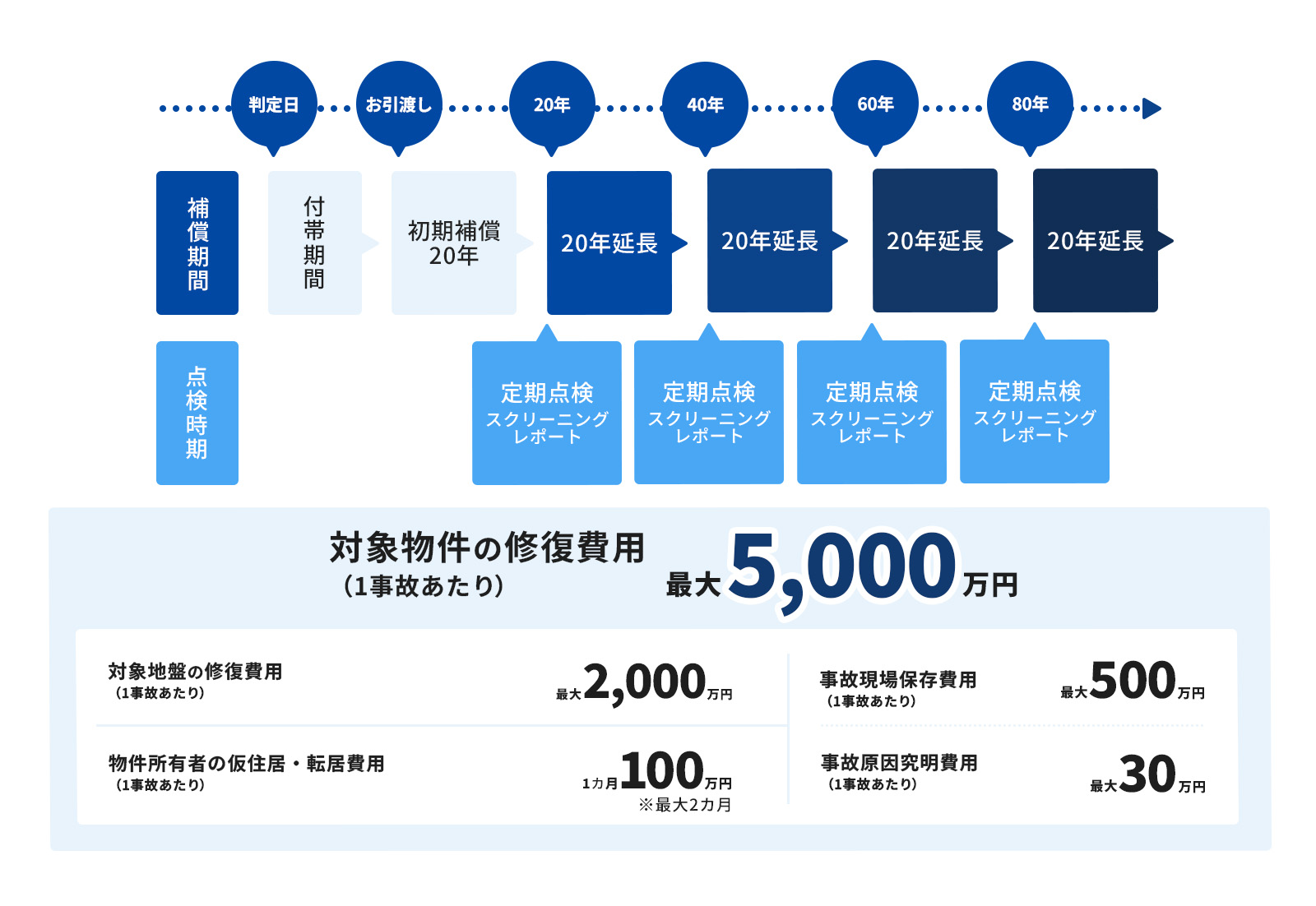 - ※シロアリ保証満了時(5年)に保証延長の再予防処理(有料)を行うと、7年目の住宅定期点検が追加されます。