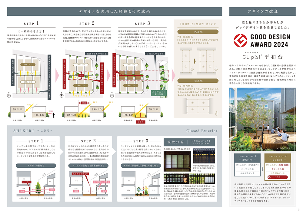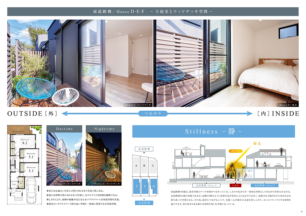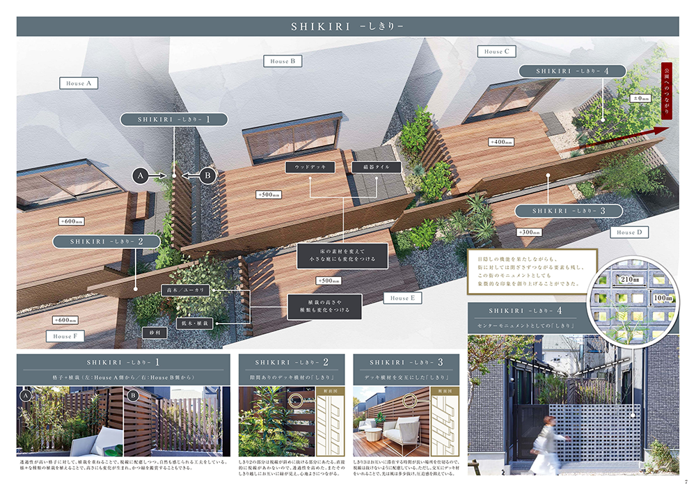 各邸のふれあいDECKが街の中央へ向くように配置することで、陽光と風を豊かに堪能できる空間を生み出しました。